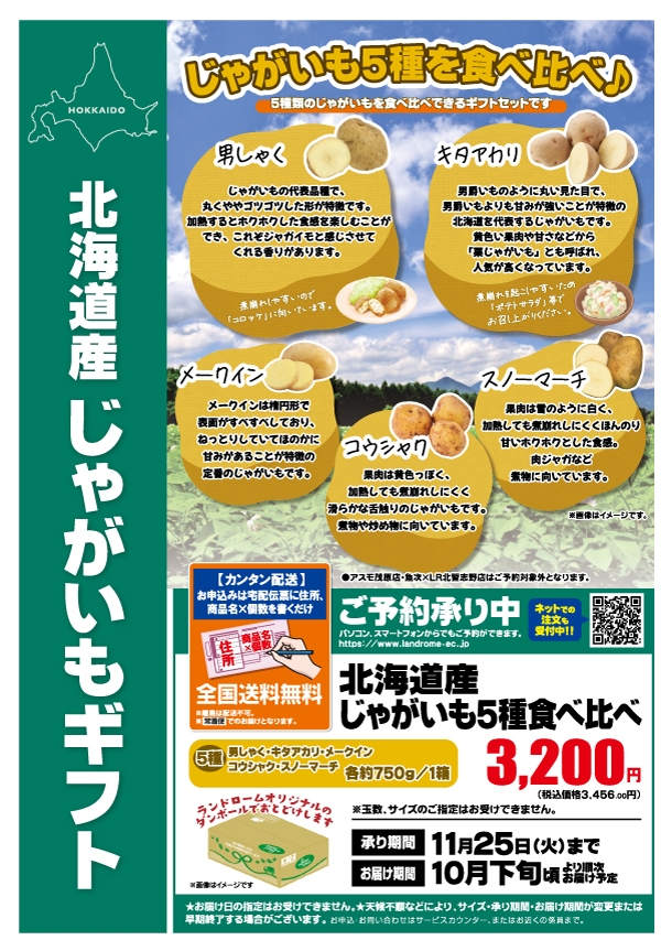 【産直】じゃがいも5種ギフト ご予約開始しました