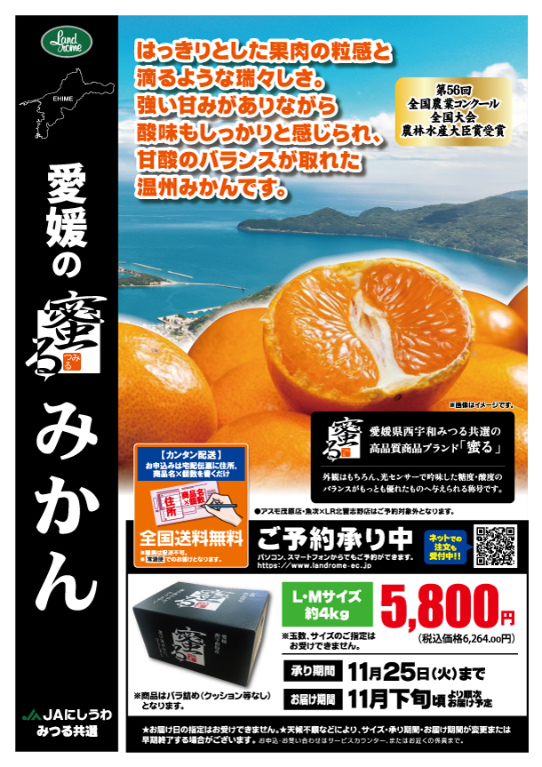 > 【産直】愛媛の蜜るみかん ご予約開始しました