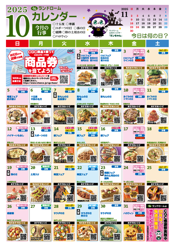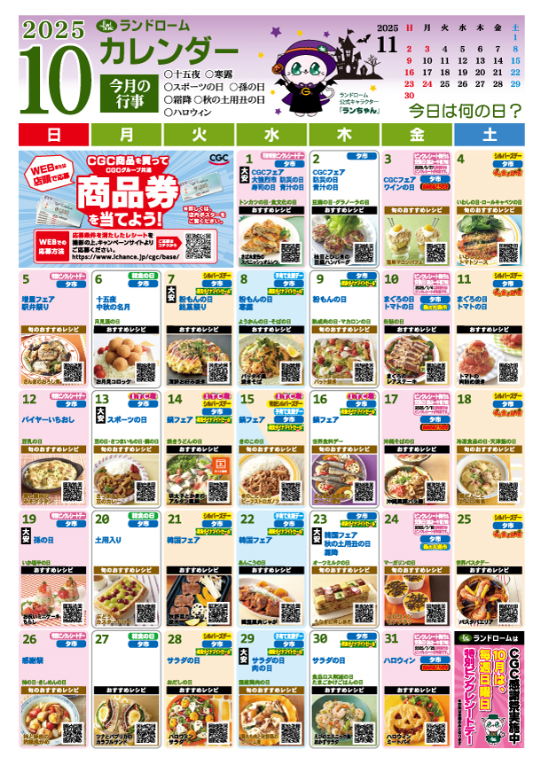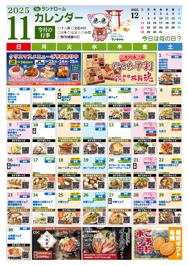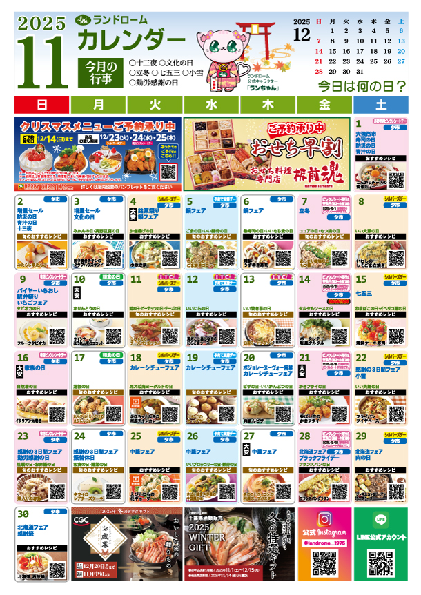 ※魚次×LR北習志野店は、他店舗とサービスが異なる為、ランドロームカレンダーは発行しておりません。あらかじめご了承ください。