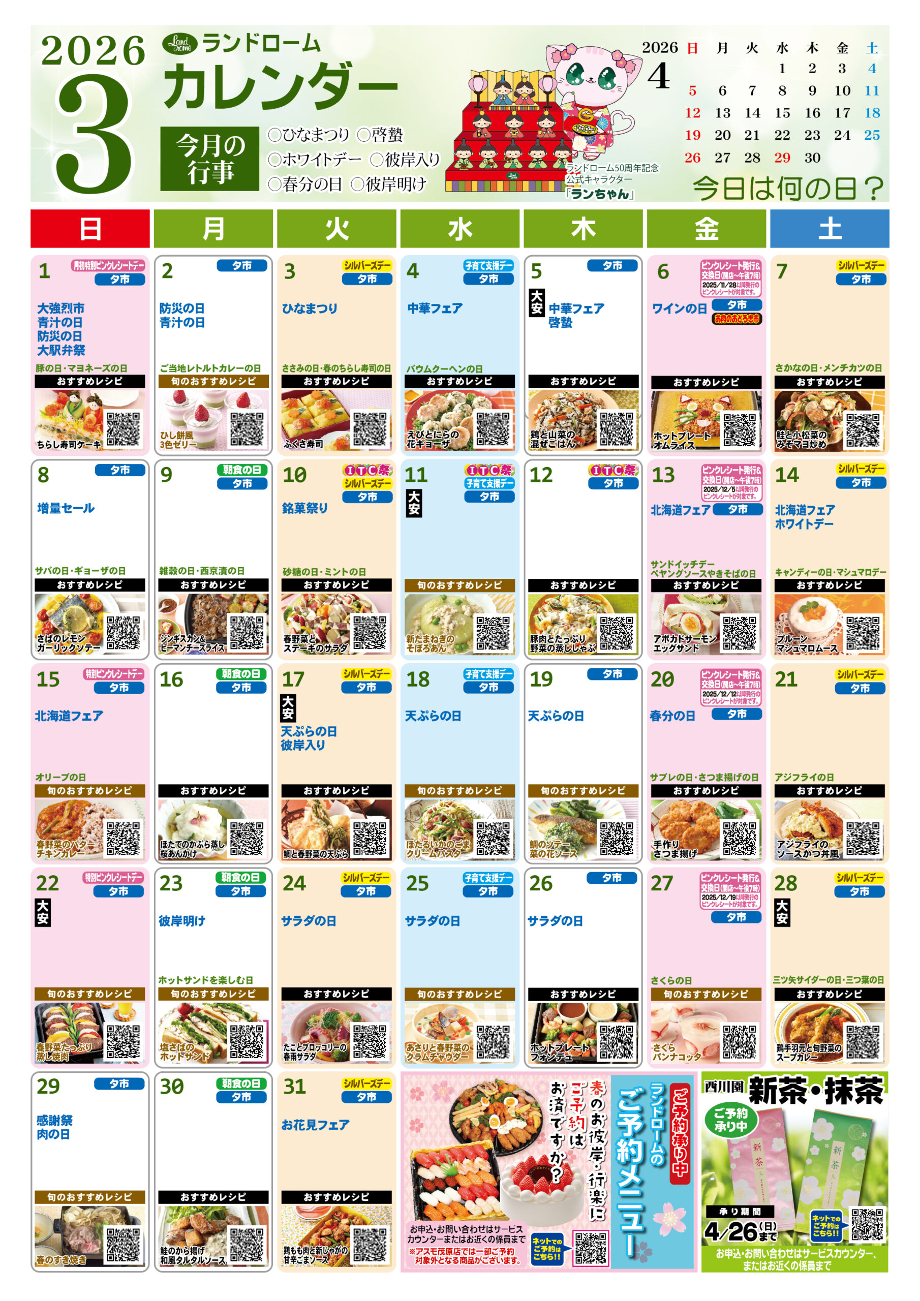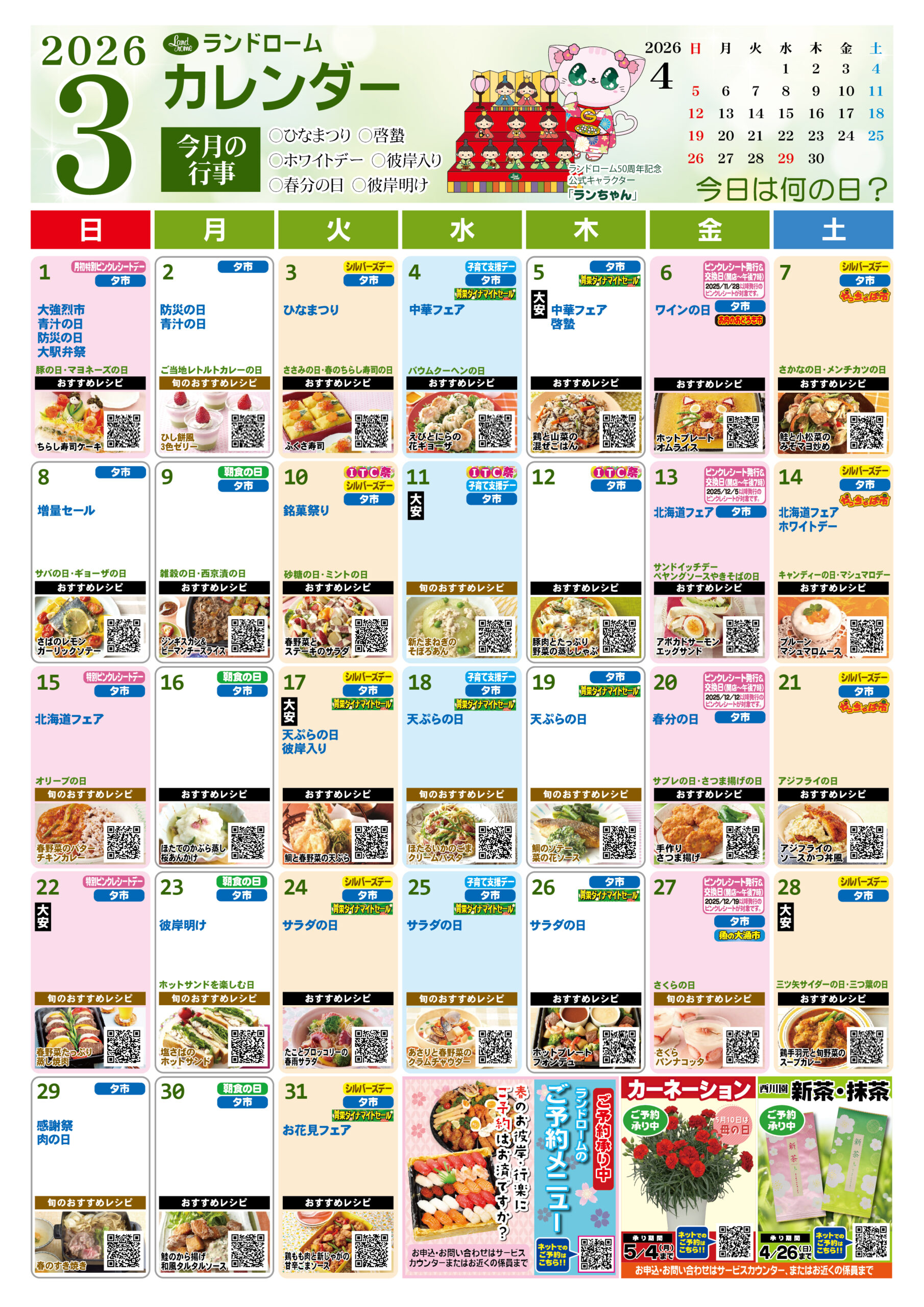 アスモ茂原店版はこちらです。3月カレンダーアスモ茂原店